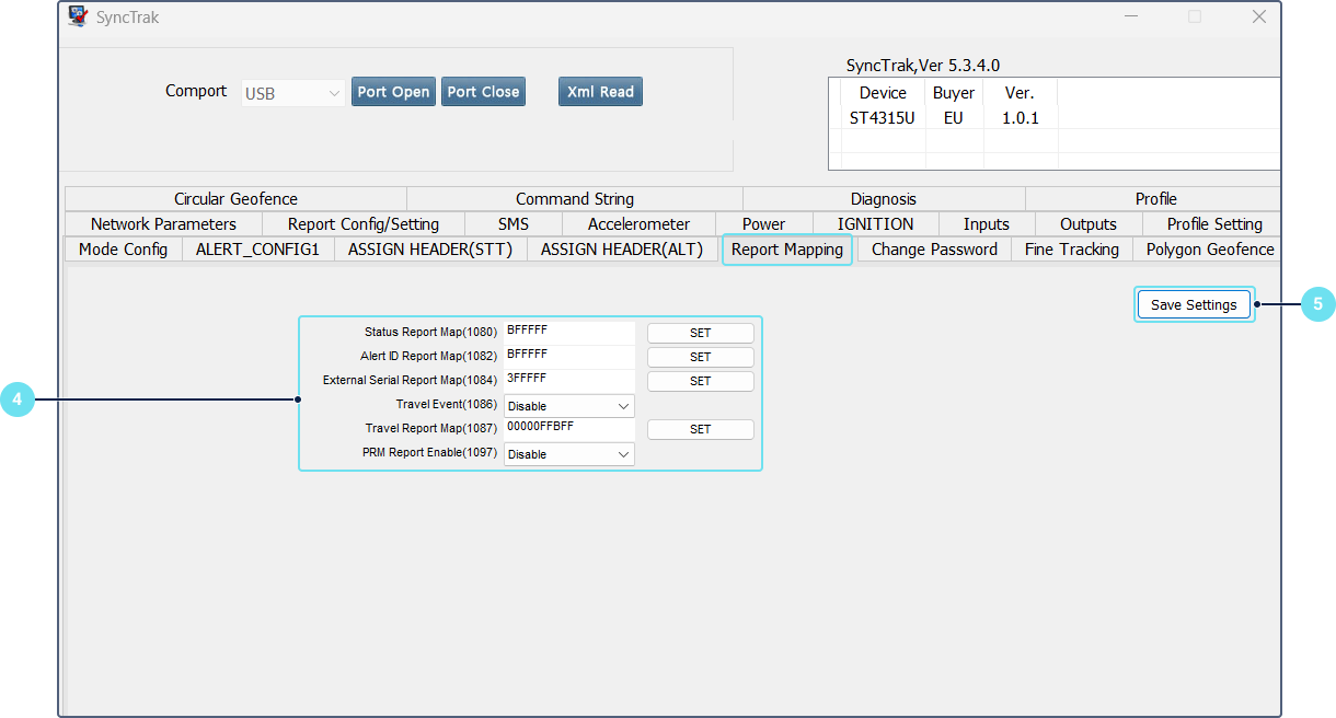 To point the device to your Wialon account, use the SyncTrak configuration software provided by the manufacturer and a micro-USB cable. Follow the steps below for a quick setup: