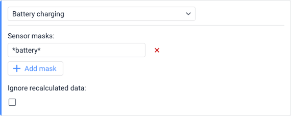 In the Sensor masks option, you can specify one or several masks of the sensors that should be used for detecting battery charges and their volume. You can click Add mask to include several sensor masks.