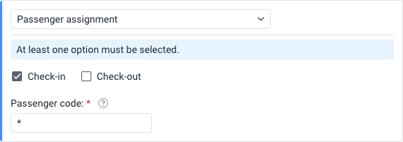 - If you want the condition to trigger for a particular passenger, specify their code or its text mask in the Passenger code field. You can enter several codes or code masks separated by commas without spaces.