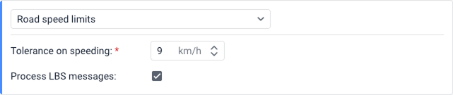 For this control type, you can specify the number of kilometers per hour by which the limits from maps can be exceeded (the Tolerance on speeding field).