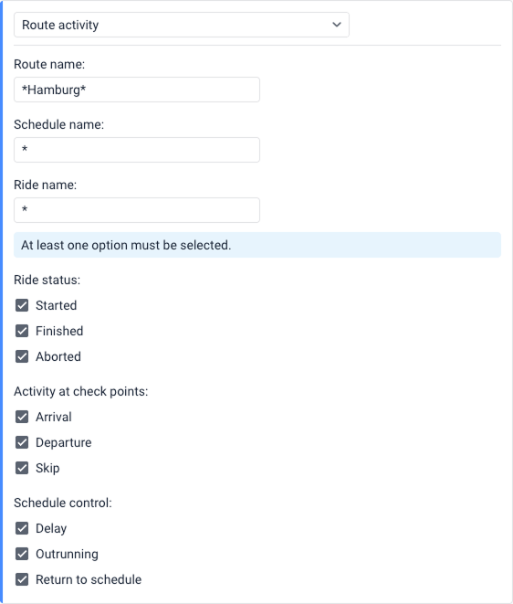 *) is specified in each field, which means the condition applies to all routes, schedules, and rides.