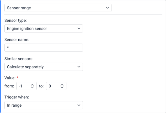 Using this condition, you can control sensor parameters in messages. It allows controlling parameters sent by the device and doesn’t include the control of virtual parameters (sats, speed, lat, and so on).