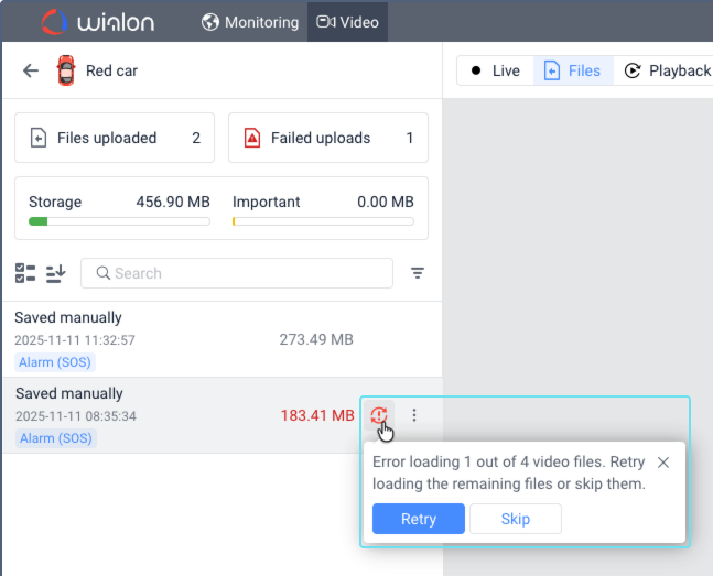 - Wialon storage: Files are kept for 30 days and then automatically deleted.