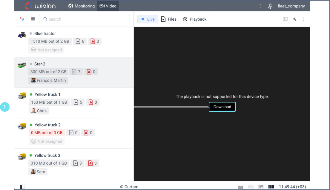 - Click on the Download button (it is shown on the right side of the screen when you select a unit whose device doesn’t support playback request).