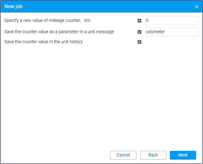 In the settings of this job, you can select one or more actions related to changing and saving the mileage counter values.