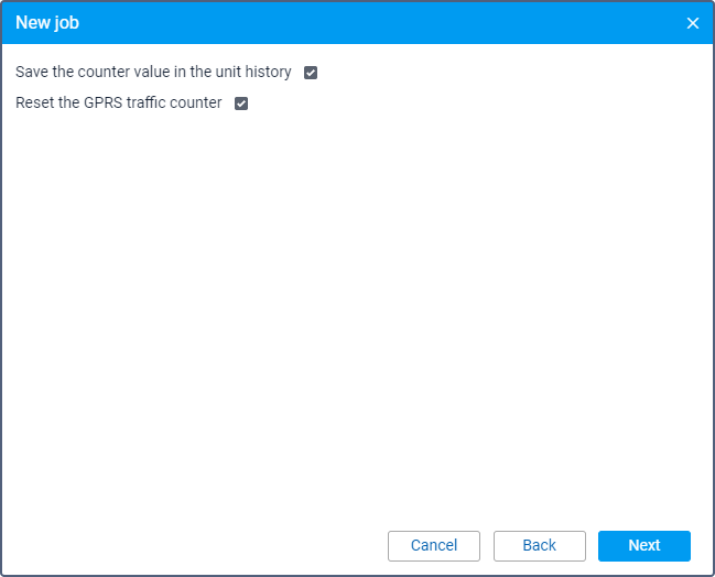 | Save the counter value in the unit history | Allows saving the counter value in the unit history. As a result, an event is registered in the system and you can see it in the Events or Chronology tables in reports. If the Reset the GPRS traffic counter option is also enabled, the counter reset is saved as an event and is shown in the GPRS traffic table in reports. |