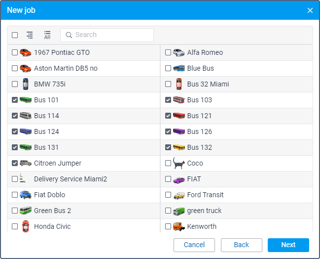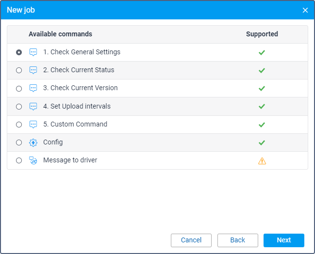 Select the command which should be sent to the unit(s) and, if necessary, specify its parameters. The list displays all the commands created in the properties of the selected units. If a command is supported by all the units, the icon