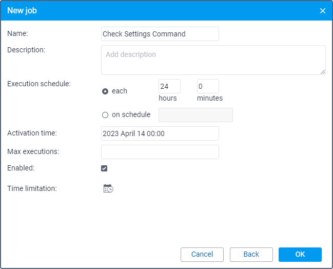 Before the command is sent, the system checks that the creators of the job and the resource in which it is stored have the required access rights. If they don’t have these rights anymore, the command is not sent.