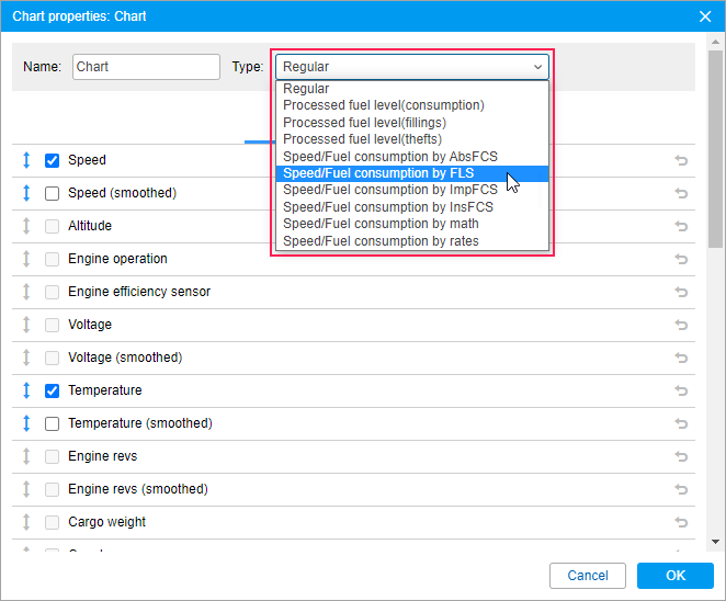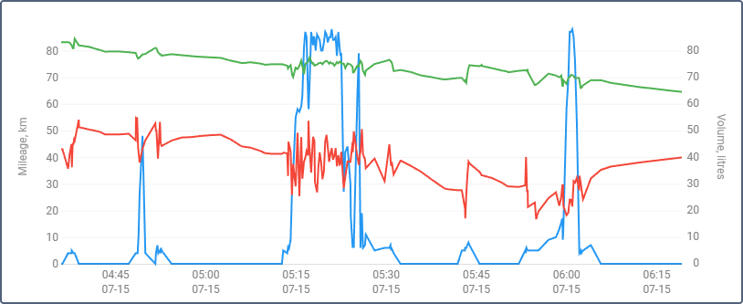 These regular charts can represent data only in the Time/Fuel level form. At the same time, it is possible to overlay other charts, such as, for instance, the voltage chart.