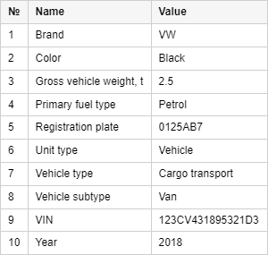 This kind of report shows the profile information indicated on the Profile tab in the unit properties.