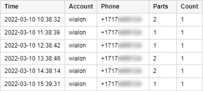 This report provides a possibility to view information about all the SMS messages sent by users of any resource for the indicated period of time. The report can contain the columns described below.