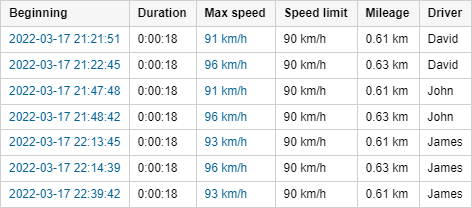 | Total time | The time from the beginning of the first speeding to the end of the last speeding. |