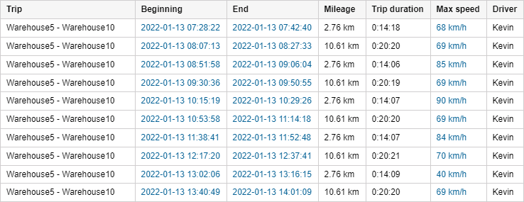 See the Trips between geofences topic to learn how to prepare trips for this report.