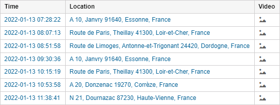 The Video table provides you with a list of video files received from a unit. The table can contain three columns.