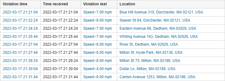 Violations are a particular case of events. The report on violations gives the list of violations detected and registered in the unit history.