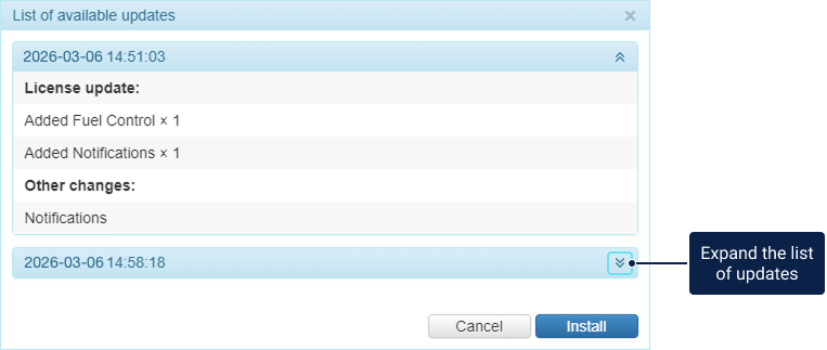 There are two sources of updates available: a purchase of components or a release of Wialon Local.