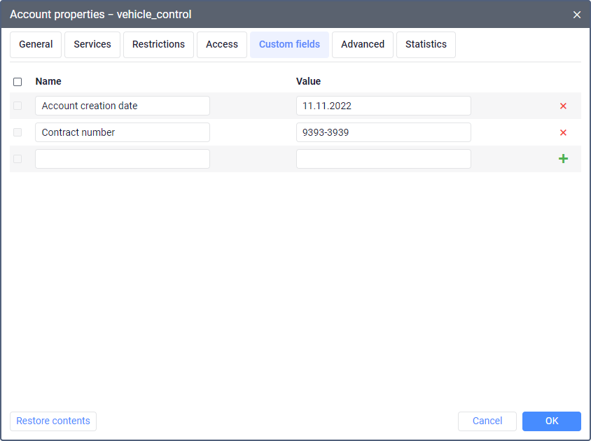To create a custom field, fill in the Name and Value fields and click on the icon