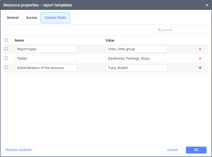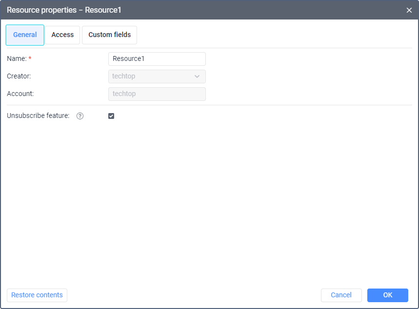 On this tab, you can create custom fields with additional information about the resource.