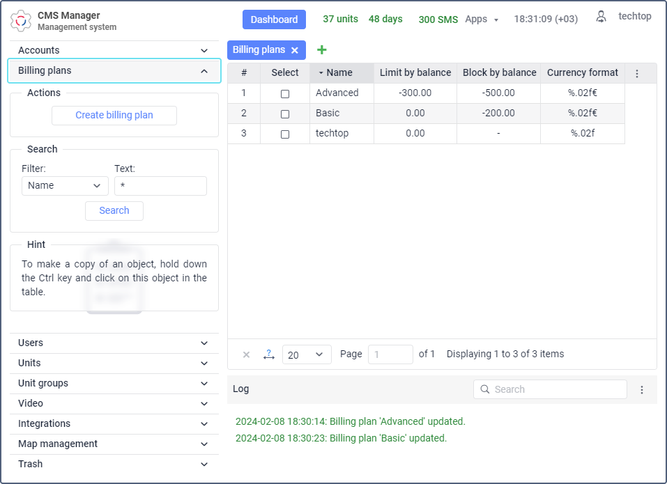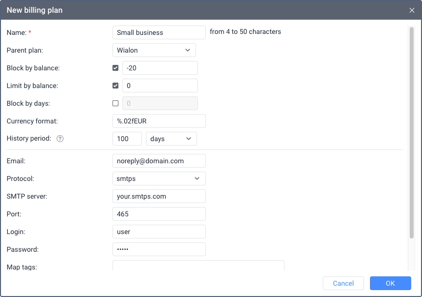 All accounts in the Wialon system are assigned a certain billing plan. It is designed for limiting user actions and for billing services.