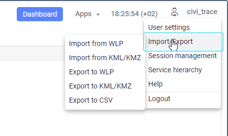 The import and export function allows you to copy various objects and their properties to a separate file or to another object. To use this function, select the Import and export item in the user menu of the management system or monitoring system.