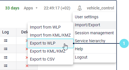 In the user menu, select the Import/Export item and click Export to WLP.