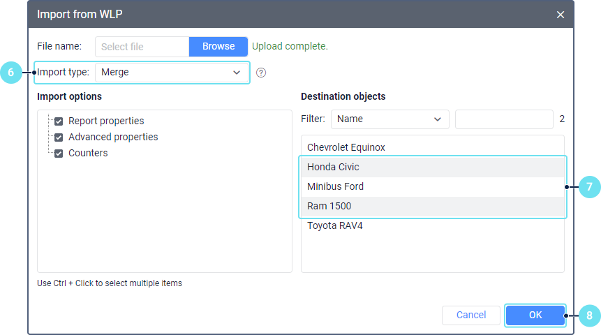 As a result, the data is saved to a WLP file (if you select one source object) or to several files (if you select several objects).