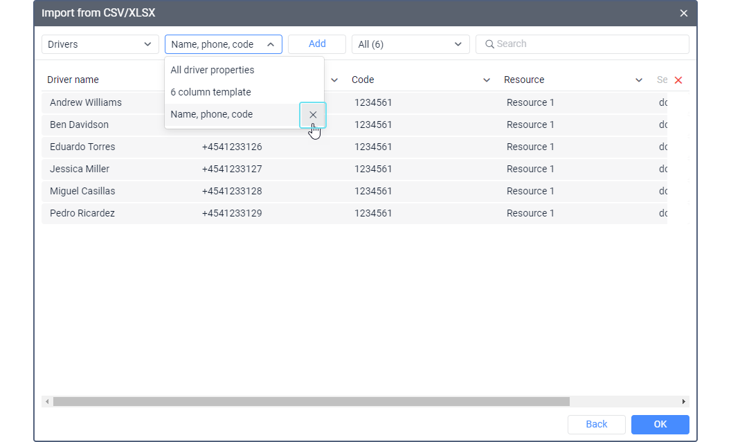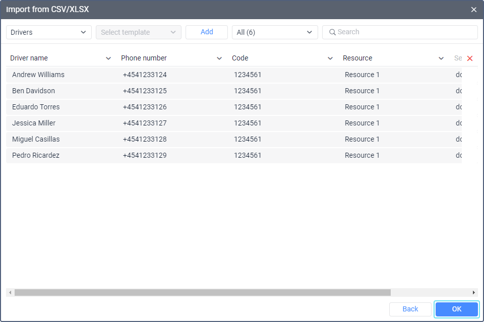 The Import from CSV/XLSX feature allows you to import units, fuel fillings and drivers in bulk from CSV and XLSX files into the system.