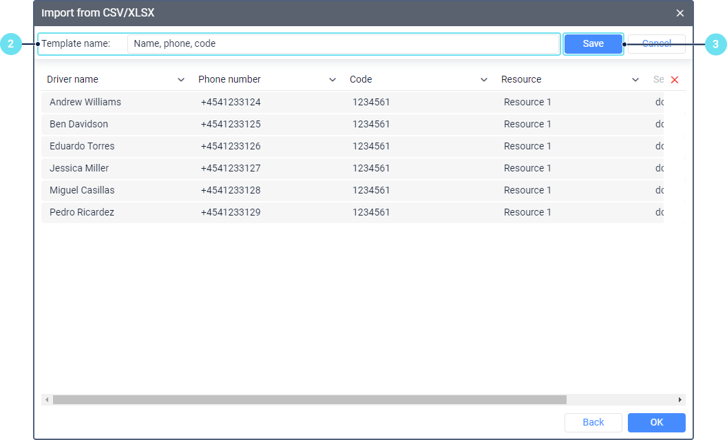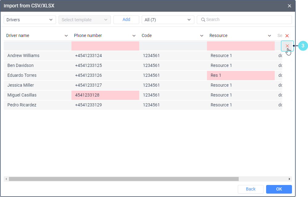 In the table for importing drivers, you can select the columns listed below. Here you can find their description and the requirements that must be met so that the data in these columns is considered valid.