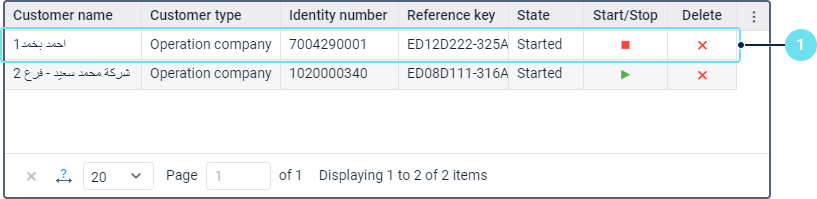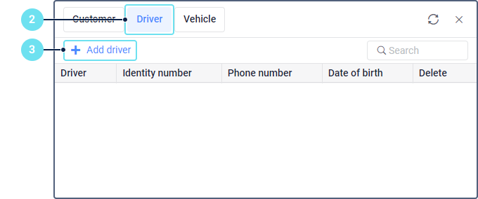 In the table of customers, click on the row of the customer for whom you want to register a driver.