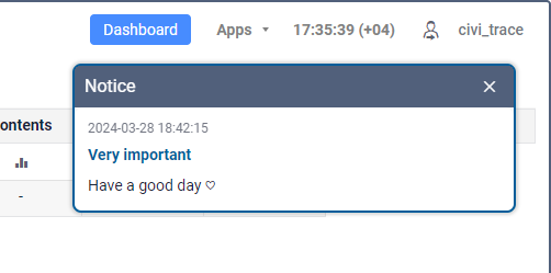 Below the username, you can see notices from the service administrator. To receive them, the Notices to users service should be enabled for your account.