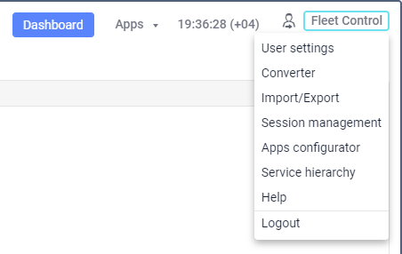 - username (if you have logged in as another user, the name of this user is specified in brackets next to yours). A click on the username opens the user menu.