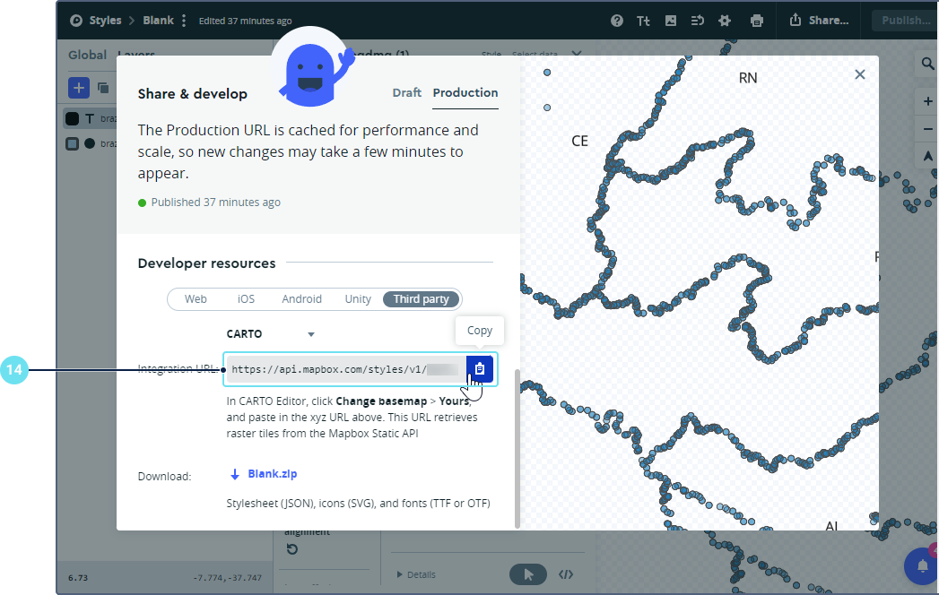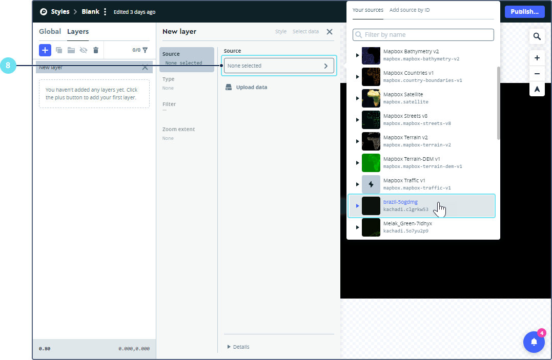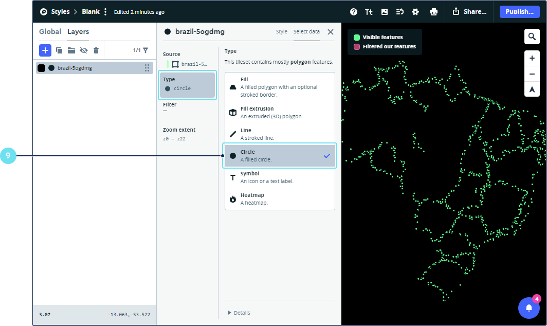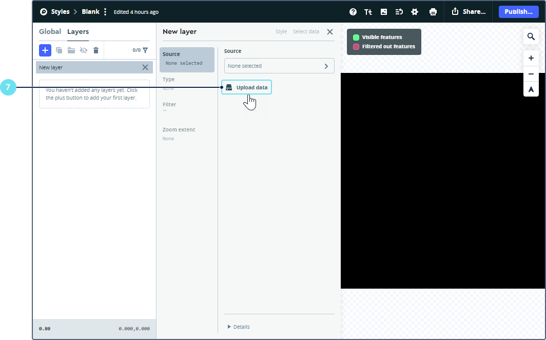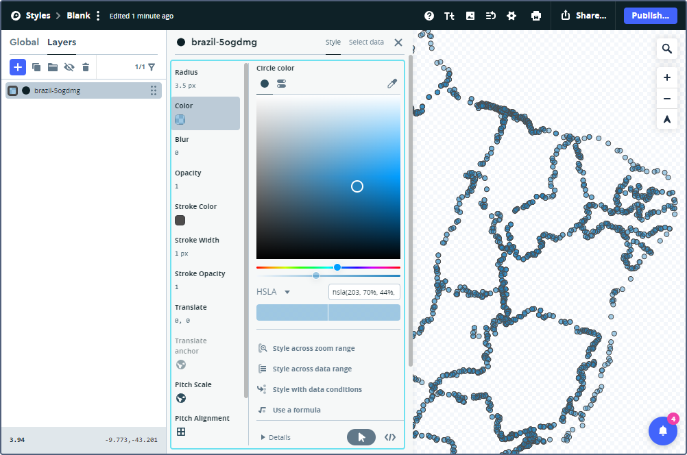 Later you can edit the created map, add new data, change the style, etc. Remember to use the Publish button to save the changes.