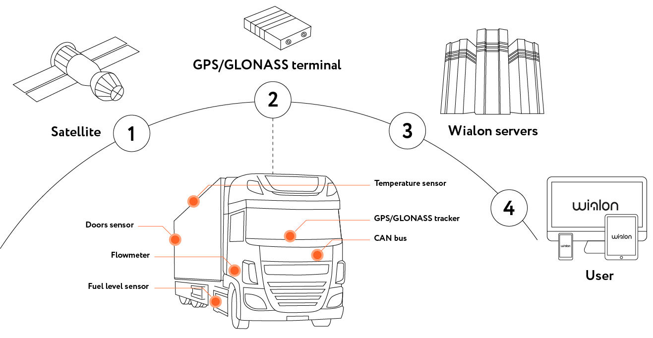 The monitoring system is used by end users to track their units (vehicle fleet, machinery, employees, pets, etc.).