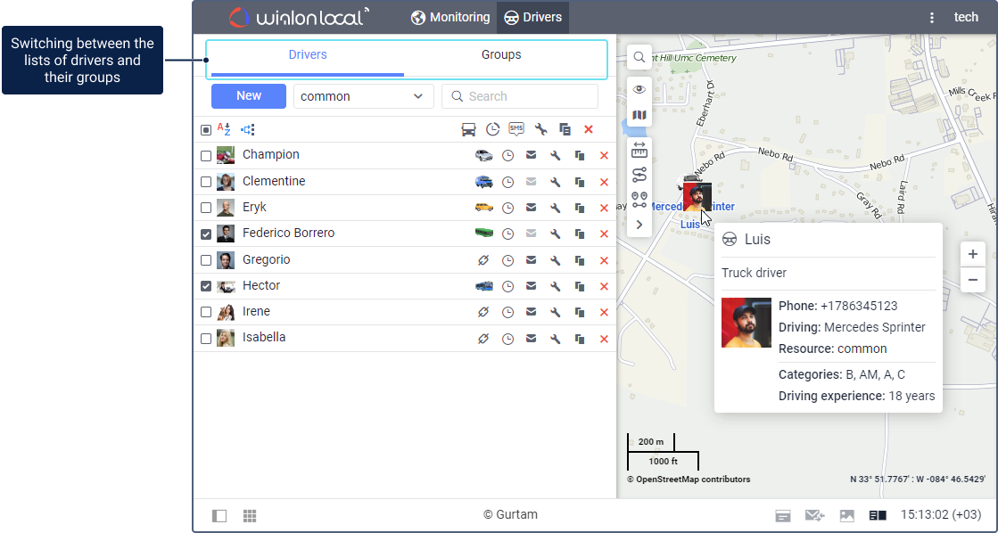 To work with drivers, click on the Drivers tab in the top panel or select a same-name item in the main menu customizer. To work with groups of drivers, switch to the Groups mode.