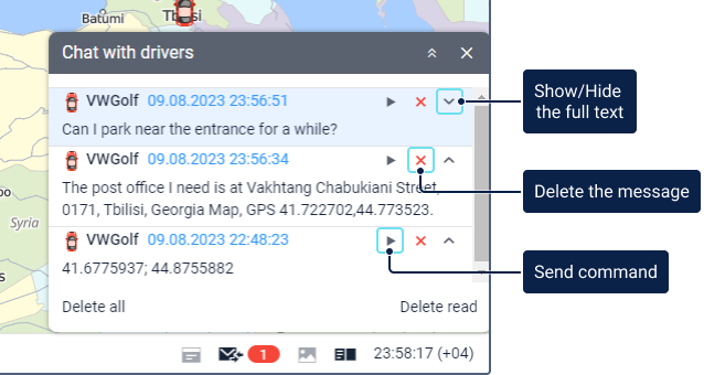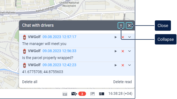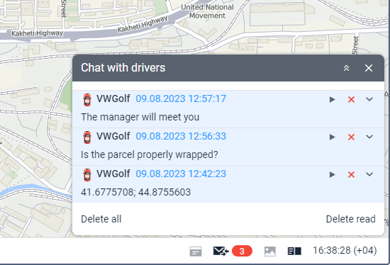 All messages from the drivers have been read. You can open the chat window to see these messages again. | |