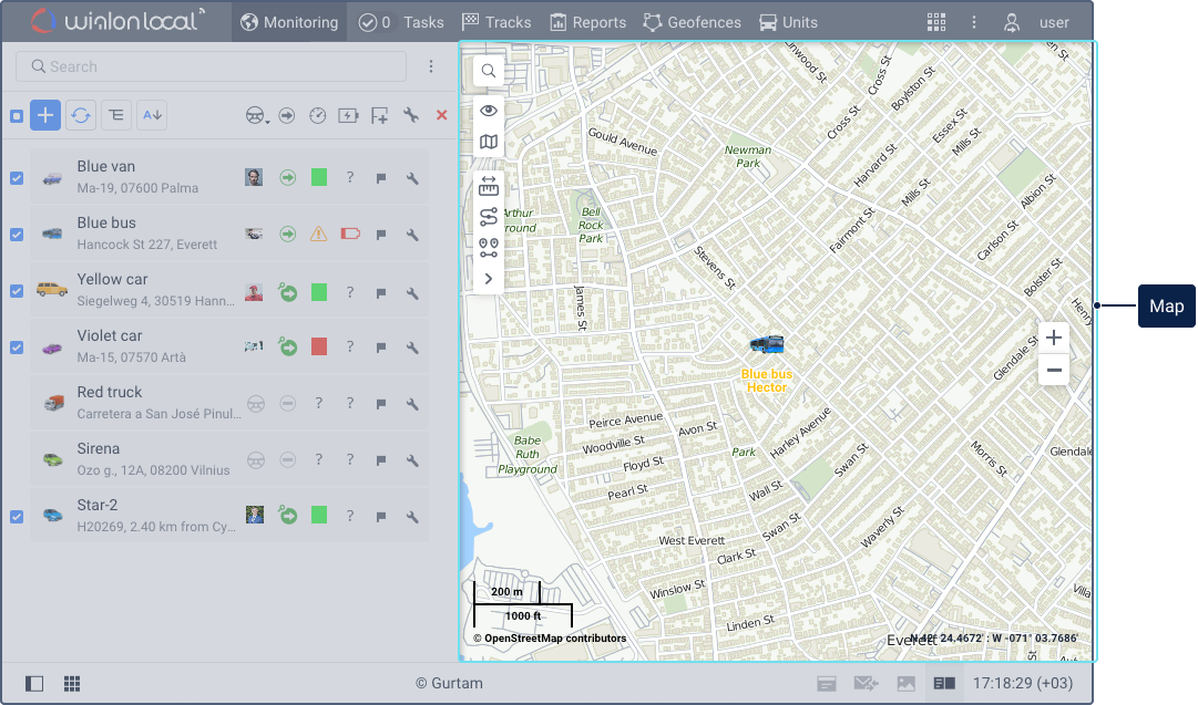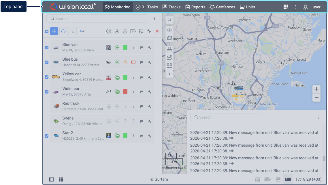The main elements of the system interface are as follows: