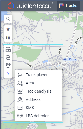 The menu of tools for working with the map is located in the left part of the map. Read more about the tools here.
