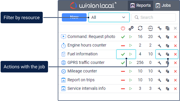 To start working with jobs, open the same-name tab. If there is no such tab, select Jobs in the main menu customizer.