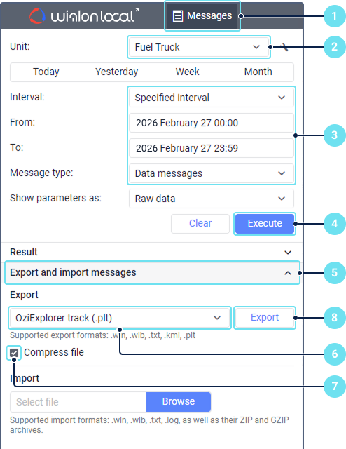 - Wialon messages: search in files with the .wln extension.