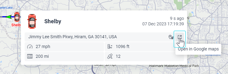 Depending on the unit settings, the values indicated in the tooltip as well as in the expanded information can be in the metric (kilometers, meters, kilometers per hour, liters), American (miles, feet, miles per hour, gallons), or imperial (miles, feet, miles per hour, gallons) measurement systems.