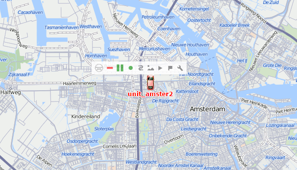 To open the menu of monitoring options, click on the required unit on the map. This menu contains the same functions that are selected for the work list of the Monitoring tab. In addition, regardless of the selected options, the menu always contains the icons for generating a quick report and building a quick track.