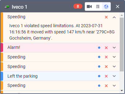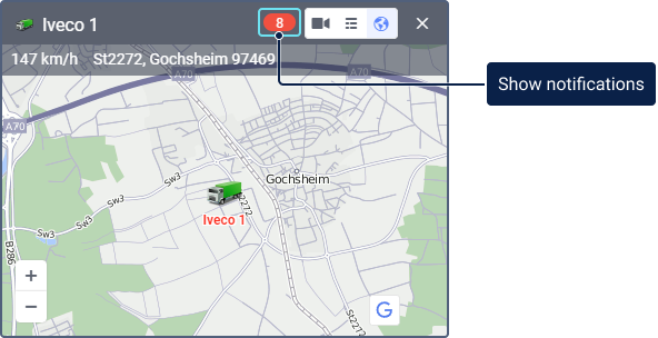 When an online notification is triggered, the unit minimap opens automatically if it was closed. An indicator of unread notifications appears in its header next to the mode icons. Click on it to view the received notifications.