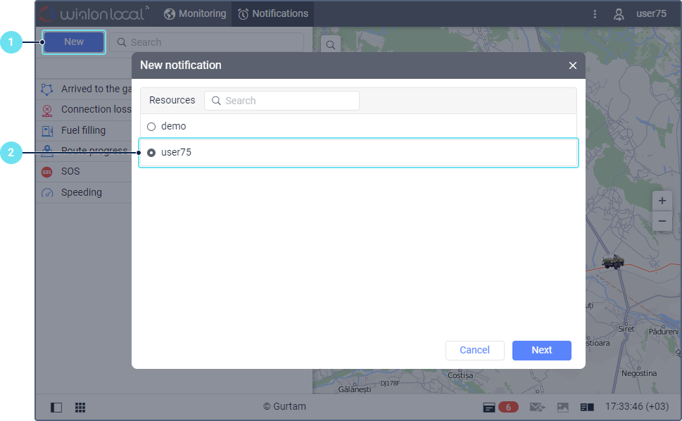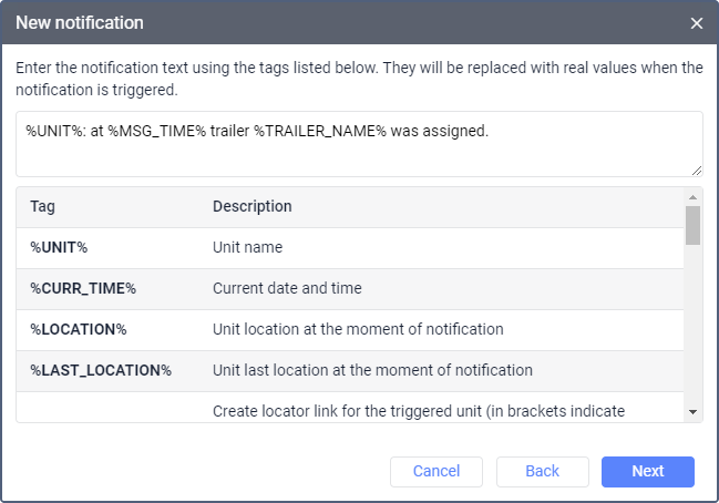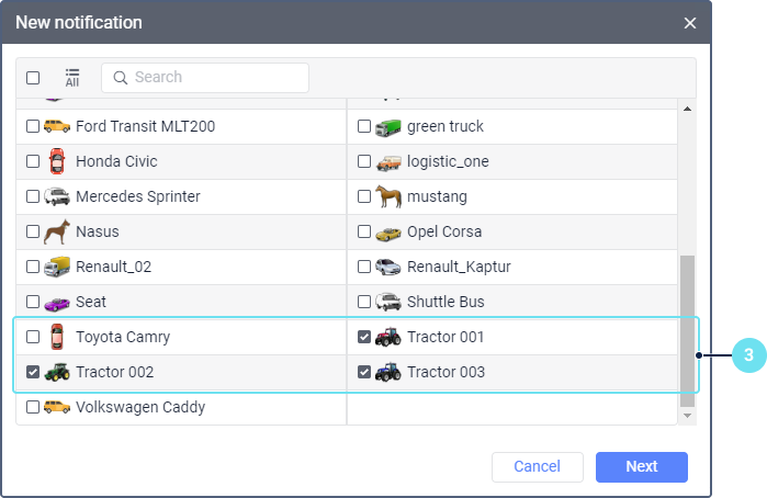 - Select the unit or units for which you want to create the notification. The units are selected in the same way as when creating jobs.