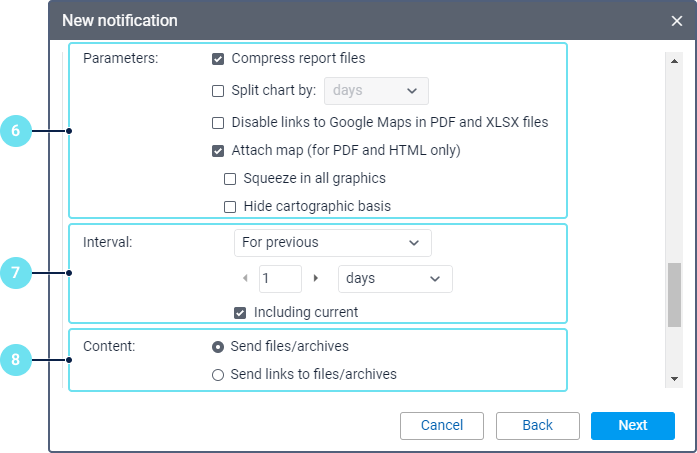 The information about the geodata in the notification report is shown in accordance with the settings of the user-creator of the resource in which this notification is created.