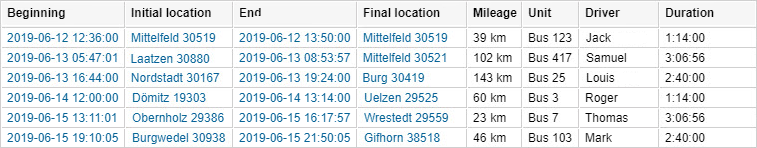 | Duration | The time the passenger spent on the trip (time between the assignment and the subsequent separation). In case of an automatic separation, 0:00:00 is indicated in this field. |