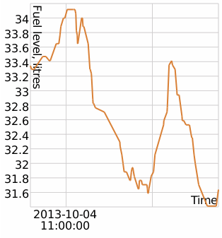 - drains/fillings on stops are marked as a vertical rising of fuel level.