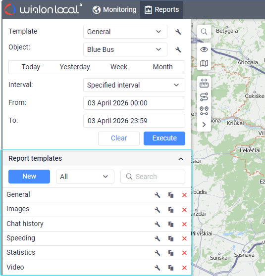 To create a new report template, press the New button. If you have access to more than one resource, select the required one and click Next.