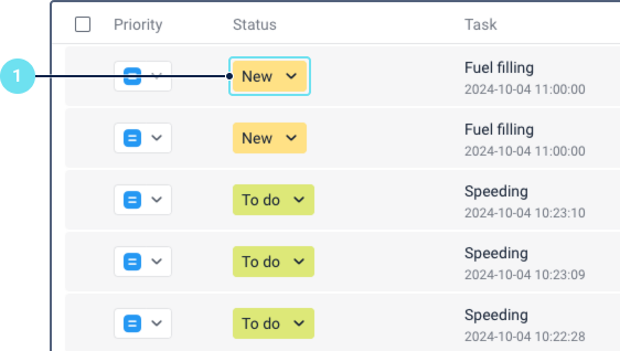 After the event is registered, the task appears in the list of tasks with the New status. You can change the status of one task or several tasks at once.