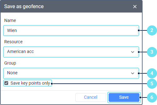 - Enter the geofence name (1–1024 characters). See character restrictions.