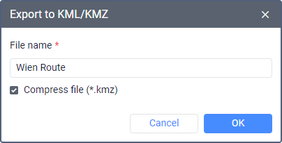 in the window of the created route and specify the name of the new file (not less than four characters). If the Compress file option is enabled, the file is archived and saved in KMZ format.